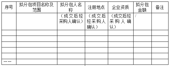 擬分包計(jì)劃表(如分包時(shí)必須提供)