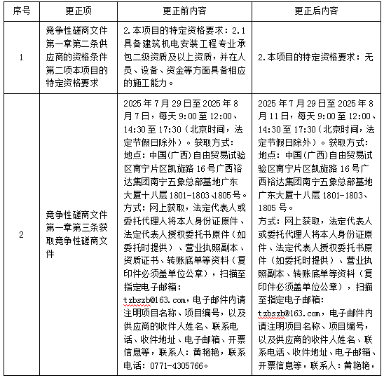 更正事項(xiàng):競爭性磋商文件